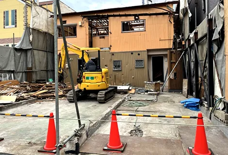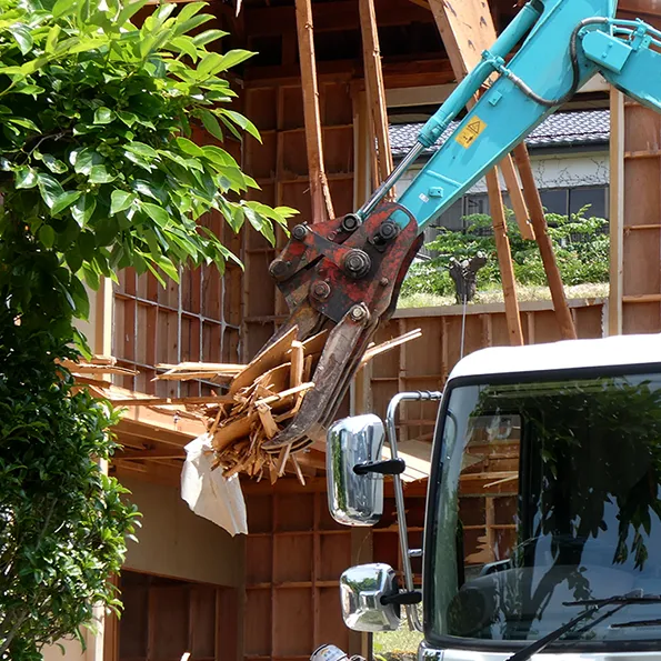 解体工事では、主に住宅や建物の解体作業に携わります。現地確認や養生の設置、重機の操作、廃材の分別や搬出など、計画段階から完了まで一連の工程に関わります。安全管理と近隣への配慮のような、工事に取り組む姿勢からしっかりと習得しながら、工程表に沿って進めます。